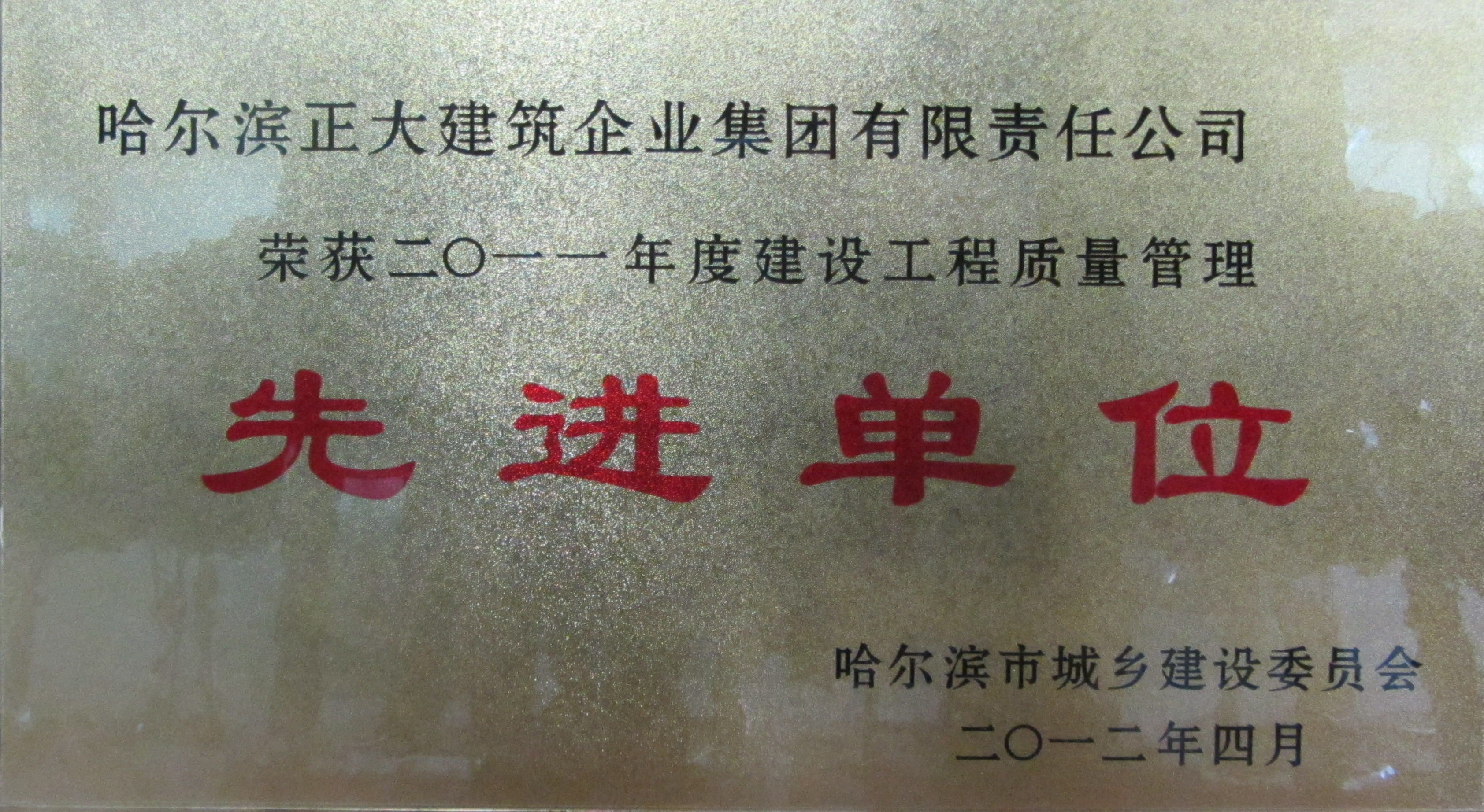 公司成立至今,先后被評為全國優(yōu)秀施工企業(yè)、全國用戶滿意施工企業(yè),全國首批建筑業(yè)誠信施工企業(yè),全國“安康杯”競賽優(yōu)勝企業(yè),全國工程建設質(zhì)量管理優(yōu)秀企業(yè)、中國建設系統(tǒng)企業(yè)信用信譽AAA級單位,并多次榮獲省、市“先進單位”、“優(yōu)秀單位”、“重合同守信用單位”、“黑龍江省優(yōu)秀施工企業(yè)”、“黑龍江省用戶滿意施工企業(yè)”等光榮稱號。并連續(xù)獲得哈爾濱市質(zhì)量管理先進單位、黑龍江省質(zhì)量管理先進企業(yè)、黑龍江省質(zhì)量管理獎、黑龍江省“安康杯”優(yōu)勝企業(yè)等榮譽。并在建筑施工現(xiàn)場環(huán)保管理上創(chuàng)造了一項“中國企業(yè)新記錄”。
